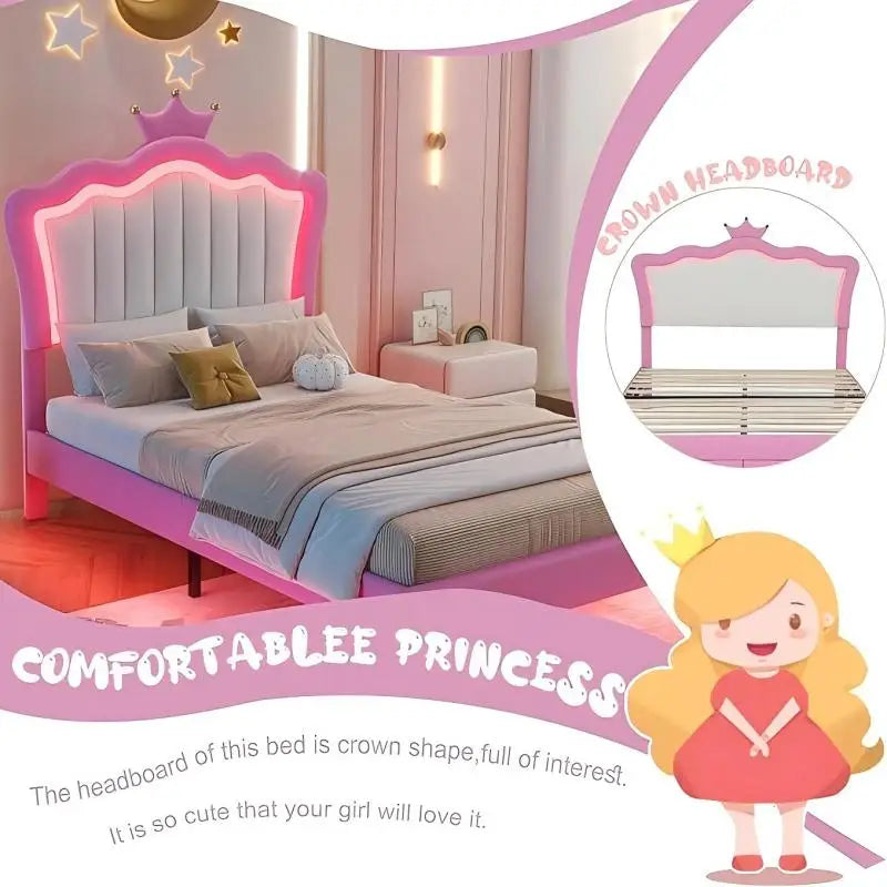 Princess Bed Twin Upholstered Bed with LED