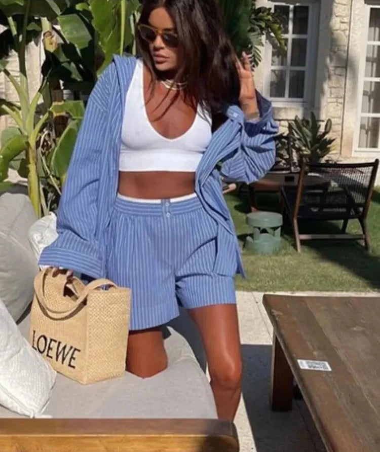 Vintage Blue Turn-down Collar Set